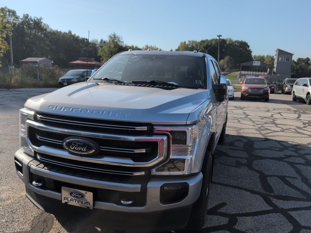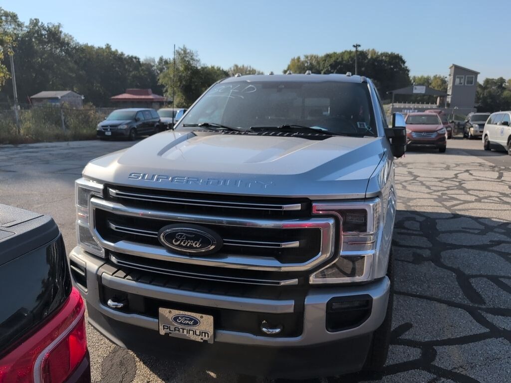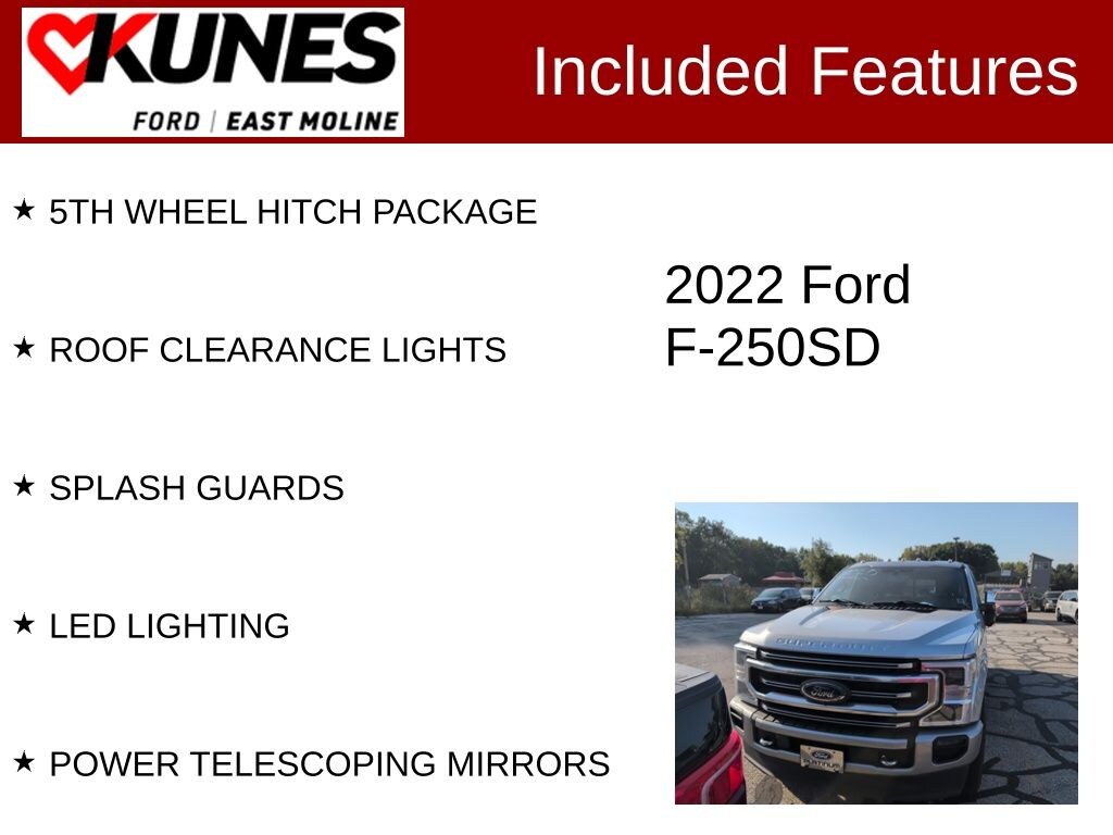 2022 Ford F-250SD Platinum Iconic Silver Metallic Power Stroke 6.7L V8 DI 32V OHV Turbodiesel Clean CARFAX. 5TH WHEEL HITCH PACKAGE, ROOF CLEARANCE LIGHTS, SPLASH GUARDS, LED LIGHTING, POWER TELESCOPING MIRRORS, 4WD.
