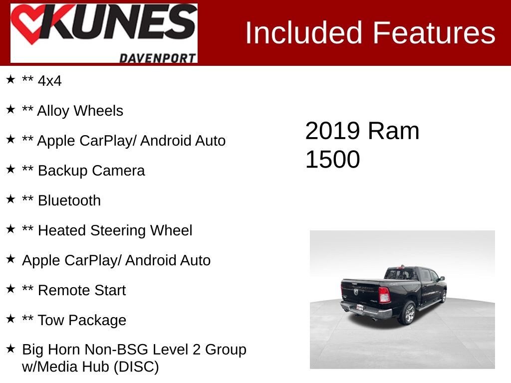 2019 Ram 1500 Big Horn/Lone Star Diamond Black Crystal Pearlcoat 4WD HEMI 5.7L V8 Multi Displacement VVT