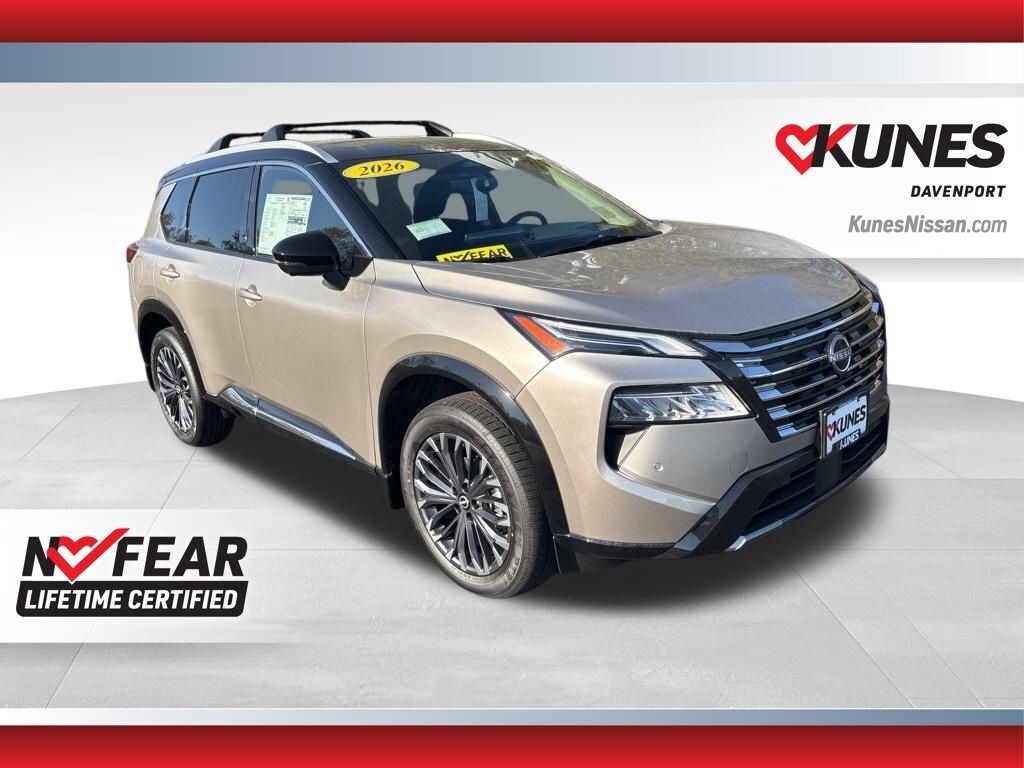 Champagne Silver Metallic/Super Black 2026 Nissan Rogue Platinum AWD.
