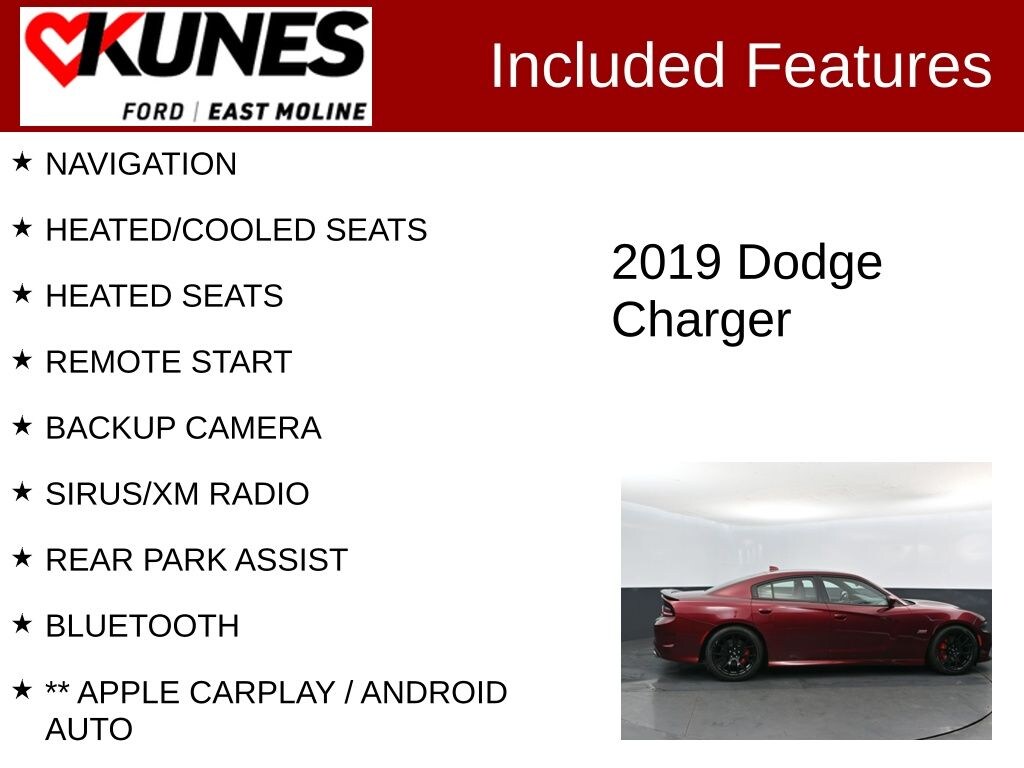 2019 Dodge Charger R/T Scat Pack Octane Red Pearlcoat SRT HEMI 6.4L V8 MDS NAVIGATION, HEATED/COOLED SEATS, HEATED SEATS, REMOTE START, BACKUP CAMERA, SIRUS/XM RADIO, REAR PARK ASSIST, BLUETOOTH, ** APPLE CARPLAY / ANDROID AUTO, ** BACK UP CAMERA, ** BLUETOOTH, Black Artificial Leather, 5-Year SiriusXM Traffic Service, 5-Year SiriusXM Travel Link Service, 6 Speakers, All Seats w/Leather Trim, Anti-whiplash front head restraints, Auto Adjust In Reverse Exterior Mirrors, Auto-Dimming Exterior Driver Mirror, Black-Edged Premium Floormats, Blind Spot Memory/Power/Heat Mirror, Blind Spot Power Heated Mirror, Brembo 6-Pot Fixed Front Caliper Brakes, Cloth Performance Seats w/Bee Logo, Delay-off headlights, Driver & Passenger Lower LED Lamps, Emergency communication system: SiriusXM Guardian, Exterior Mirrors Courtesy Lamps, Front Overhead LED Lighting, Front reading lights, Heated 2nd Row Seats, Illuminated entry, Illuminated Rear Cupholders, Overhead airbag, Power Driver/Passenger 4-Way Lumbar Adjust, Power Tilt/Telescope Steering Column, Premium-Stitched Dash Panel, Radio data system, Radio: Uconnect 4C Nav w/8.4" Display (DISC), Radio: Uconnect 4C w/8.4" Display, Radio/Driver Seat/Mirrors Memory, Rear Armrest w/Cupholder Seat, Rear reading lights, Scat Pack Logo Nappa/Alcantara Seat, SiriusXM Traffic Plus, SiriusXM Travel Link, Speed-Sensitive Wipers, Split folding rear seat, Sport steering wheel, Steering wheel mounted audio controls, Ventilated Front Seats, Wheels: 20" x 9.0" Black Noise, Wheels: 20" x 9.5" Low-Gloss Black Forged. Odometer is 39435 miles below market average!
