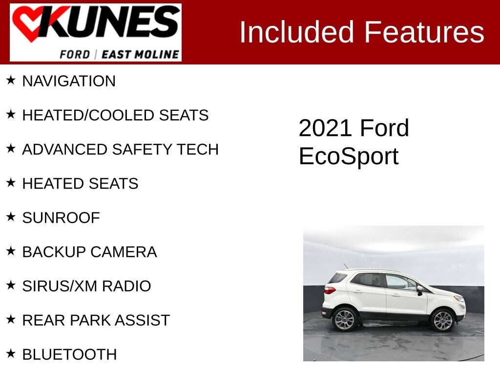 2021 Ford EcoSport Titanium Diamond White FWD EcoBoost 1.0L I3 GTDi DOHC Turbocharged VCT