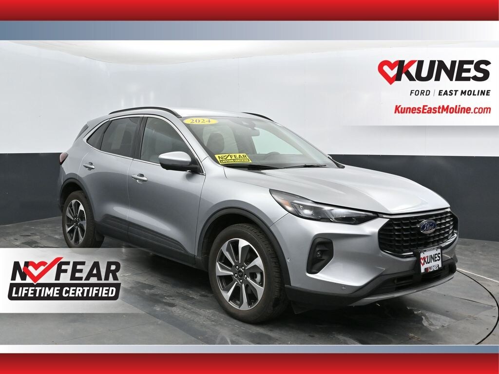 2024 Ford Escape Platinum Iconic Silver Metallic EcoBoost 2.0L I4 GTDi DOHC Turbocharged VCT CARFAX One-Owner. Clean CARFAX. NAVIGATION, ADAPTIVE CRUISE, ADVANCED SAFETY TECH, HEATED SEATS, BACKUP CAMERA, SIRUS/XM RADIO, REAR PARK ASSIST, BLUETOOTH, NEW TIRES, ** BACK UP CAMERA, ** BLUETOOTH, AWD, 2.91 Axle Ratio, 4-Wheel Disc Brakes, ABS brakes, AM/FM Stereo, Auto High-beam Headlights, Auto-dimming Rear-View mirror, Brake assist, Bumpers: body-color, Compass, Delay-off headlights, Driver door bin, Driver vanity mirror, Electronic Fuel Door Release, FordPass Connect, Four wheel independent suspension, Front anti-roll bar, Front Bucket Seats, Front Center Armrest, Front dual zone A/C, Front fog lights, Front reading lights, Fully automatic headlights, Garage door transmitter, HD Radio, Heated ActiveX Trimmed Front Sport Contour Bucket Seats, Heated door mirrors, Heated Leather-Trimmed Front Sport Contour Seats, Heated steering wheel, Illuminated entry, Knee airbag, Memory seat, Neutral Towing Capability, Outside temperature display, Overhead airbag, Overhead console, Panic alarm, Passenger door bin, Passenger vanity mirror, Pedestrian Alert Sounder, Power door mirrors, Power driver seat, Power Liftgate, Power passenger seat, Power steering, Power windows, Radio data system, Rear reading lights, Rear seat center armrest, Rear window defroster, Rear window wiper, Remote keyless entry, Roof rack: rails only, Security system, Speed control, Speed-Sensitive Wipers, Split folding rear seat, Spoiler, Steering wheel mounted audio controls, SYNC 4 w/Enhanced Voice Recognition, Tachometer, Telescoping steering wheel, Tilt steering wheel, Trip computer. Odometer is 15763 miles below market average! 23/31 City/Highway MPG