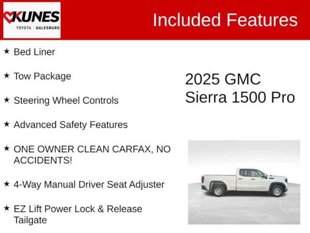 2025 GMC Sierra 1500 Pro Summit White Recent Arrival! CARFAX One-Owner. Clean CARFAX. Apple CarPlay/Android Auto, Collision Avoidance, Bluetooth, Rear View Camera, Keyless Entry, Keyless Ignition, Navigation/GPS/NAVI, Satellite Radio, MP3 player, Bed Liner, Tow Package, Steering Wheel Controls, Advanced Safety Features, ONE OWNER CLEAN CARFAX, NO ACCIDENTS!, 10-Speed Automatic, 4WD, Jet Black Vinyl, 4-Way Manual Driver Seat Adjuster, EZ Lift Power Lock & Release Tailgate.