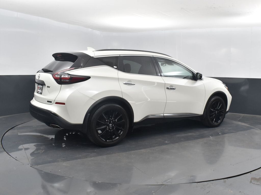 2023 Nissan Murano SV Pearl White Tricoat 3.5L V6 DOHC 24V CARFAX One-Owner. Clean CARFAX. ADVANCED SAFETY TECH, HEATED SEATS, BACKUP CAMERA, SIRUS/XM RADIO, BLUETOOTH, ** APPLE CARPLAY / ANDROID AUTO, ** BACK UP CAMERA, ** BLUETOOTH, CVT with Xtronic, 4.667 Axle Ratio, Auto-dimming Rear-View mirror, Heated door mirrors, Knee airbag, Power driver seat, Power passenger seat, Rear seat center armrest, Rear side impact airbag, Speed-Sensitive Wipers, Split folding rear seat, Turn signal indicator mirrors, Variably intermittent wipers, Wheels: 18" Machined Aluminum-Alloy. 20/28 City/Highway MPG