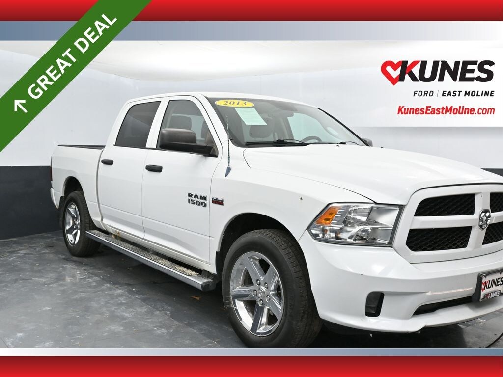 2013 Ram 1500 Express Bright White Clearcoat HEMI 5.7L V8 Multi Displacement VVT Clean CARFAX. 100% NON SMOKER, LOCAL TRADE, COMPLETE DETAIL AND INSPECTION, ** BACK UP CAMERA, ** BLUETOOTH, Black Exterior Mirrors, Body Color Rear Bumper w/Step Pads, Brake assist, Carpet Floor Covering, Delete Class IV Receiver Hitch, Delete Spray In Bedliner, Driver door bin, Exterior Mirrors w/Heating Element, For More Info, Call 800-643-2112, Front wheel independent suspension, Heavy Duty Vinyl 40/20/40 Split Bench Seat, Occupant sensing airbag, Overhead airbag, Passenger door bin, Radio data system, Rear Folding Seat, Rear seat center armrest, Tachometer, Tip Start, Voltmeter.